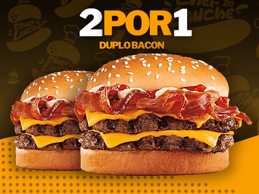 Descubra a explosão de sabores com os nossos 'Dois Duplo Bacon' Entregue-se a esta experiência e fique 'baconavida' em dose dupla com os nossos deliciosos Duplo Bacon!