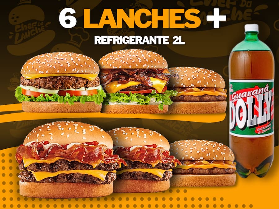 Descubra a satisfação em cada mordida com o nosso 'Combo Família'. Ele é composto por 2 irresistíveis Snacks Cheddar e 2 Duplos Bacon, com generosas camadas de queijo e bacon crocante. Além disso, oferecemos 1 Chef Salad, fresca e nutritiva, e 1 Bacon Barbecue, com o sabor marcante do molho barbecue. Como cortesia, incluímos uma refrescante Coca-Cola de 2l, perfeito para complementar sua refeição. Desfrute desta deliciosa combinação exatamente como apresentada na foto!.