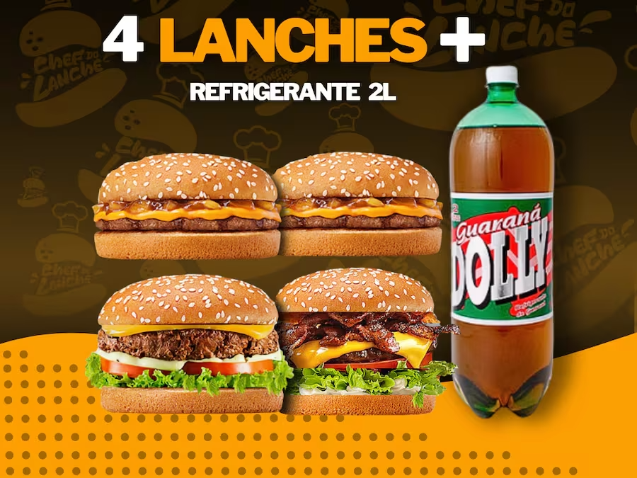 2 snack cheddar, 1 chef salad e 1 bacon bbc + 1 dolly 2l Gratis !