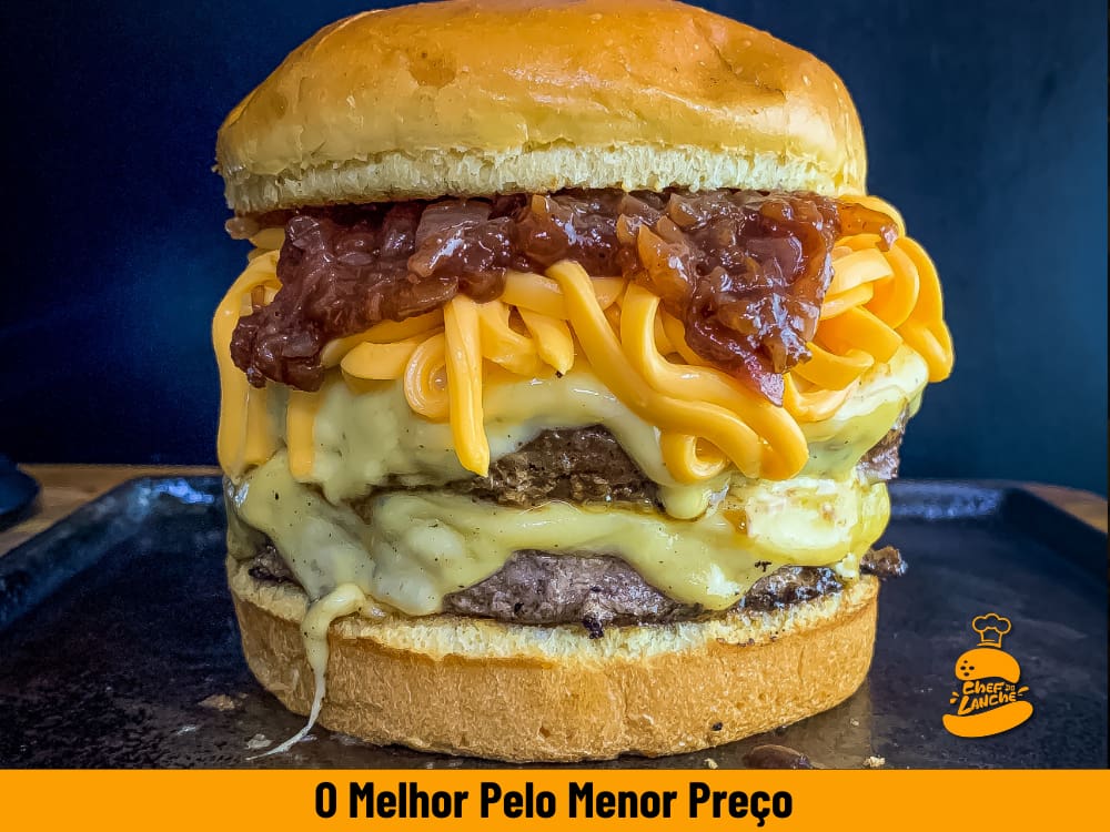 O Big Cheddar Duplo Artesanal é uma experiência culinária inigualável. Seu pão brioche macio e dourado envolve Duas suculentas carnes artesanais de 150g cada, totalizando 300g de carne, repleta de sabor autêntico. 2 fatias de queijo cheddar, derretido ao ponto ideal, harmoniza-se com nosso molho cheddar, que é extremamente saboroso e cremoso. Para um toque final, a cebola, cuidadosamente picada, é cozinhada na chapa com um delicioso molho barbecue, que agrega um toque defumado ao prato. Este é o nosso Big Cheddar Duplo, um hambúrguer gourmet feito para os verdadeiros amantes do queijo cheddar.