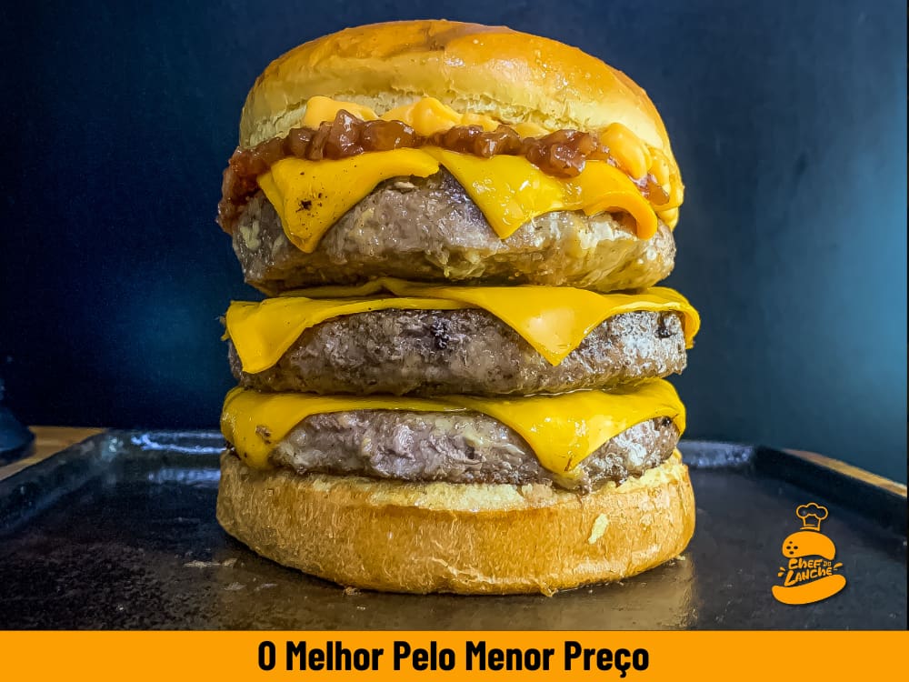 O Big Cheddar Triplo Artesanal é uma experiência culinária inigualável. Seu pão brioche macio e dourado envolve Três suculentas carnes artesanais de 150g cada, totalizando 450g de carne, repleta de sabor autêntico. 3 fatias de queijo cheddar, derretido ao ponto ideal, harmoniza-se com nosso molho cheddar, que é extremamente saboroso e cremoso. Para um toque final, a cebola, cuidadosamente picada, é cozinhada na chapa com um delicioso molho barbecue, que agrega um toque defumado ao prato. Este é o nosso Big Cheddar Triplo, um hambúrguer gourmet feito para os verdadeiros amantes do queijo cheddar.