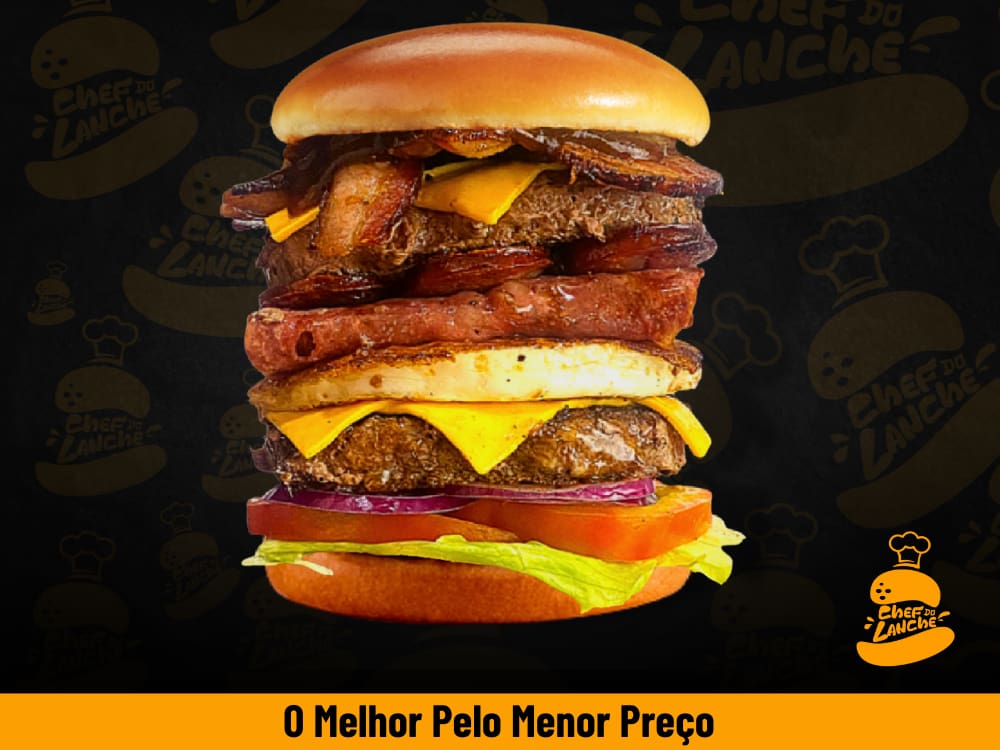 Apresentamos o 'Big Monster Chef 2.0 (Artesanal)', uma majestosa obra-prima da culinária gourmet. Este colossal hambúrguer artesanal ostenta não uma, mas duas suculentas carnes, pesando um total de 300g. Adornando essas carnes, encontram-se duas generosas fatias de queijo cheddar derretido. A salada, composta por alface americano crocante, cebola roxa picante, tomate fresco e pickles, adiciona um contraste maravilhoso de sabores. Não se esqueça da pitada de luxo proporcionada pelo ovo, presunto e bacon fatiado, completando este banquete com a adição de calabresa apimentada. O toque final é o molho especial da Chef e o barbecue, que dão ao Big Monster 2.0 seu sabor inesquecível. Não hesite, peça já o seu e dê um upgrade em sua experiência culinária!