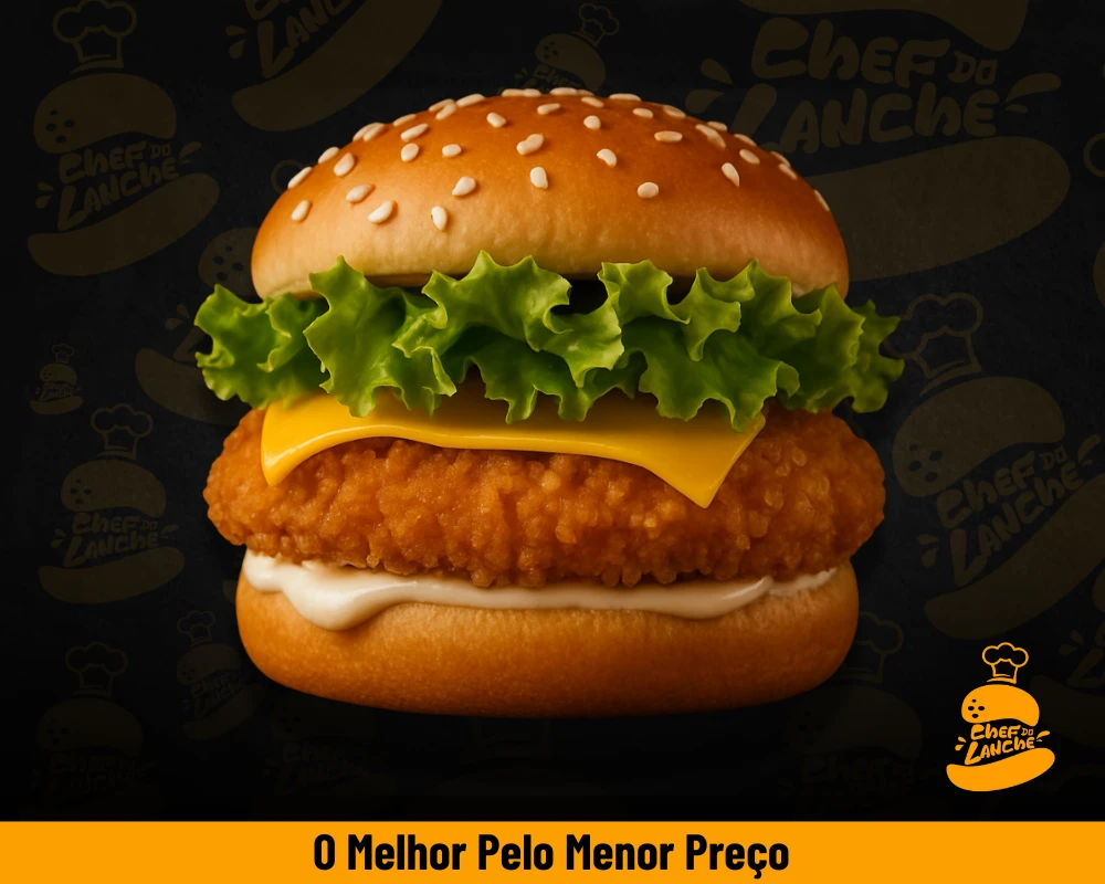 O 'Chef Chicken' é um lanche majestoso da categoria 'Lanches e Combos'. Esse prato de alta qualidade apresenta um suculento hambúrguer de frango, pesando 100g, cuidadosamente acomodado em um leito de alface americana fresca e crocante. A essência pungente da cebola, aliada à doçura do tomate maduro, enriquece ainda mais o sabor. A coroação deste magnífico prato é uma generosa porção de queijo cheddar fatiado, derretido até a perfeição. Para finalizar, um toque especial de molho grill, similar ao icônico molho do Bk, acrescenta um sabor maravilhosamente intenso e irresistível!